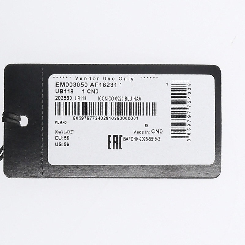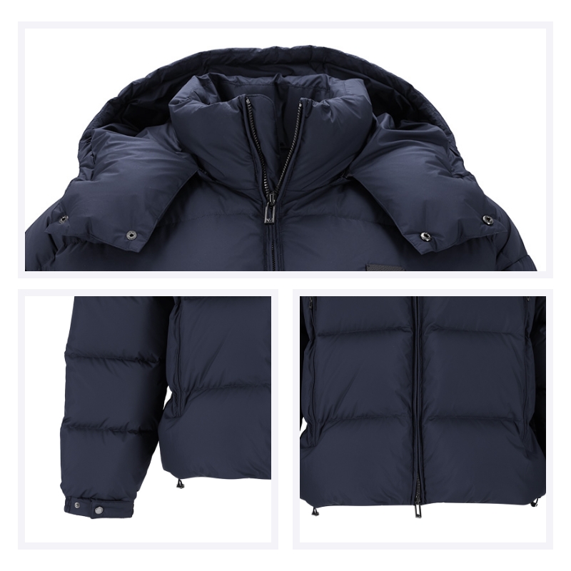 - 此款 EMPORIO ARMANI 羽绒服采用防撕裂的织纹结构,集轻便和实穿于一身。可拆卸连帽设计,配有全拉链前襟,绗缝格填充饱满,拉链口袋方便置物,在不同天气条件下可保持舒适性,是应对多种情况的理想之选。