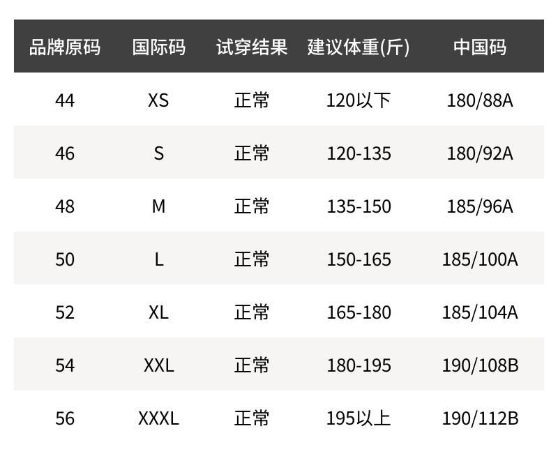 - 尺码说明