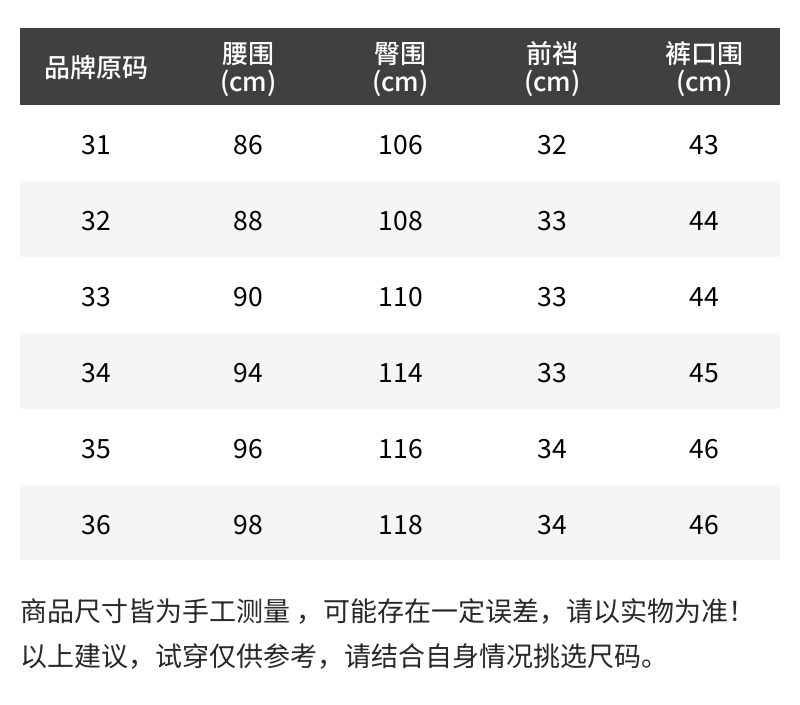 - 温馨提示:1.丢失包装及附件或拆除防损标签/吊牌时不予退换,敬请理解。2.批次不同,产地/细节有所不同,随机发货。3.所有尺寸皆为手工测量,存在1~3cm误差,请以实物为准!