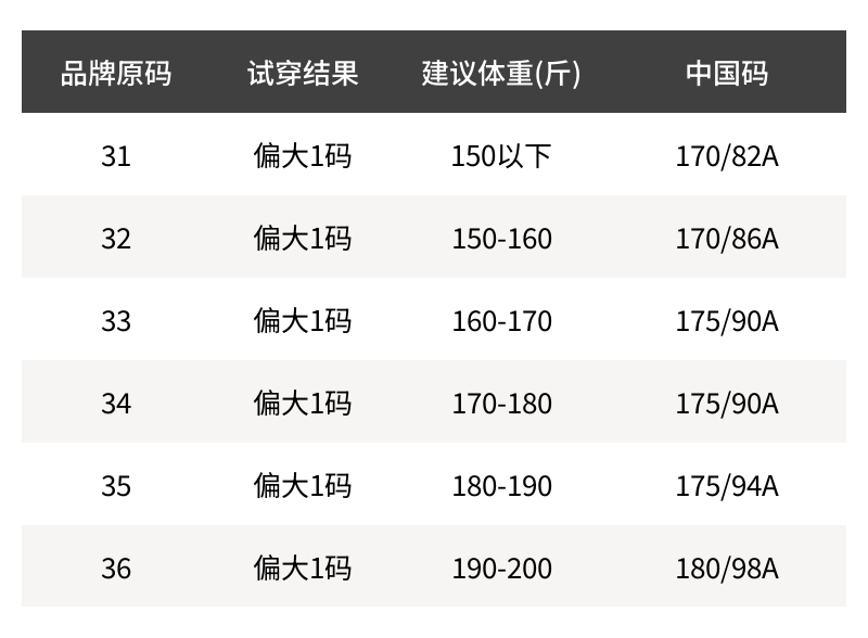 - 尺码说明