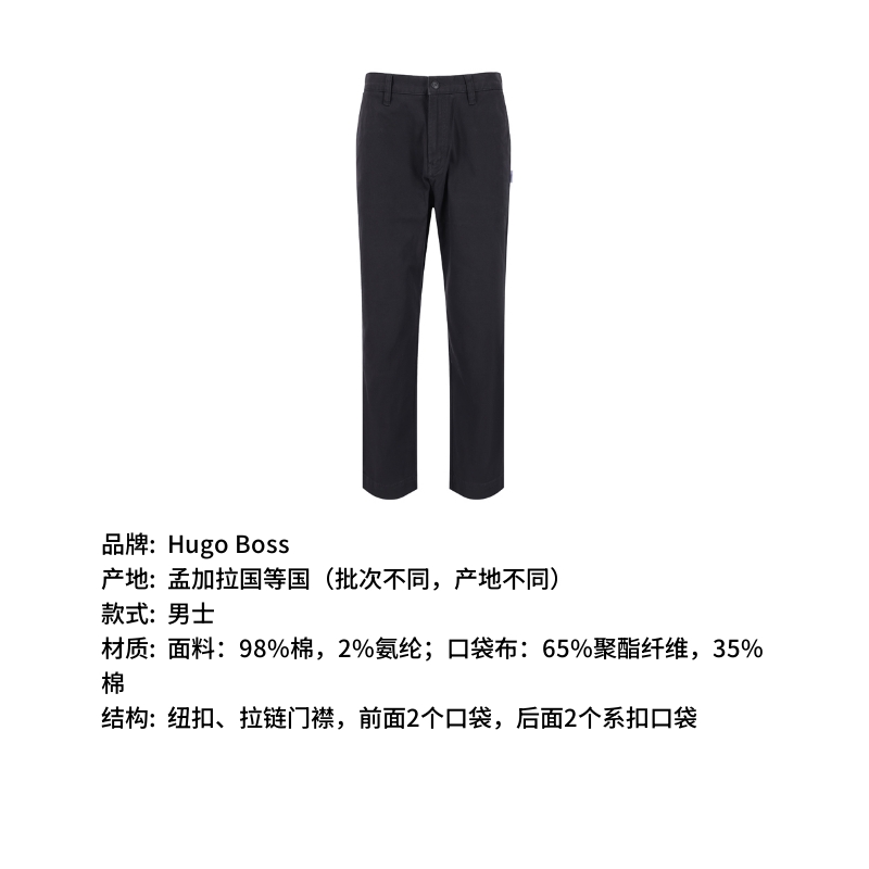 自营Hugo Boss 雨果博斯 新品 男士HUGO系列棉质黑色斜纹布直筒休闲长裤 50511260 001