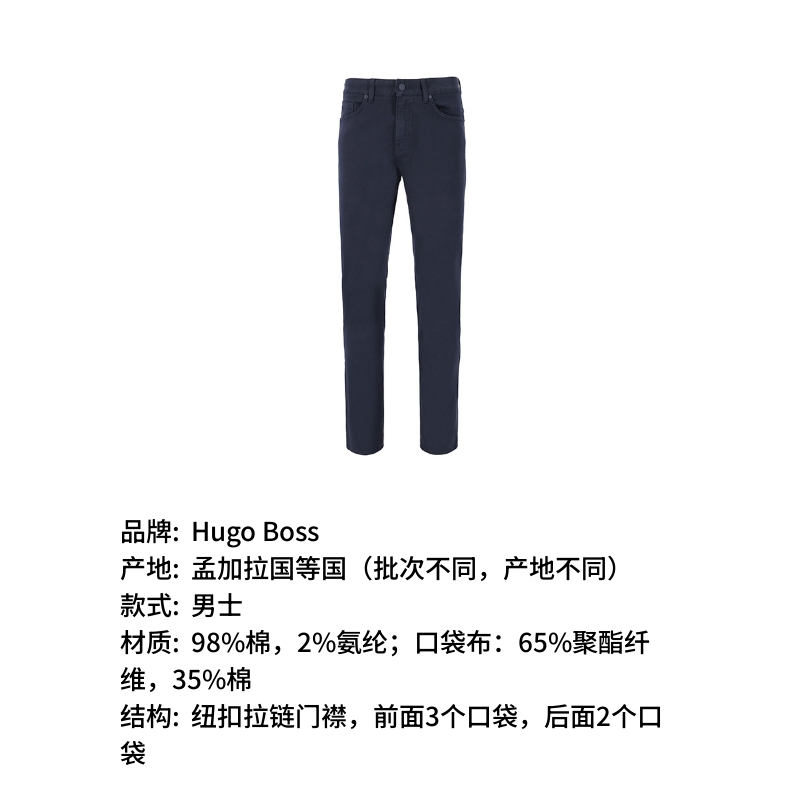 自营Hugo Boss 雨果博斯 新品 男士black系列棉质深蓝色修身版休闲裤长裤 50524421 404