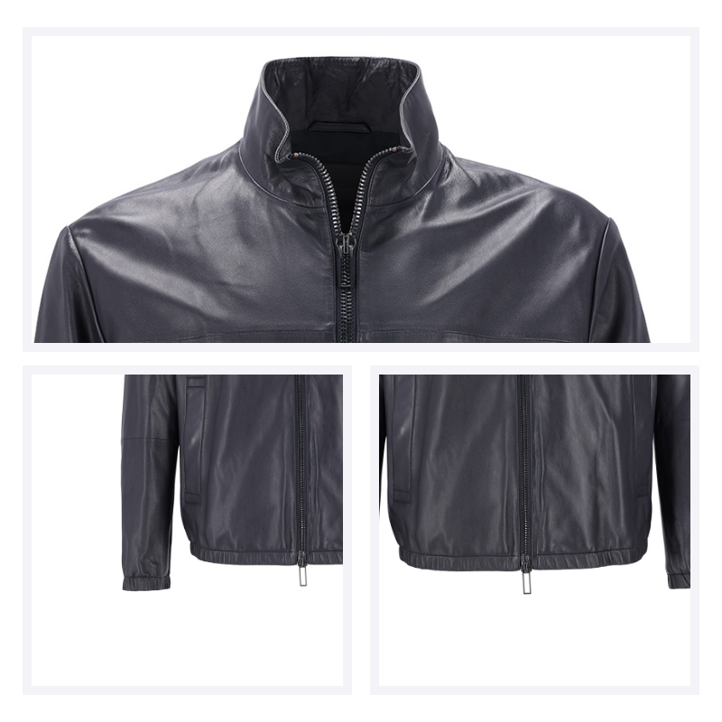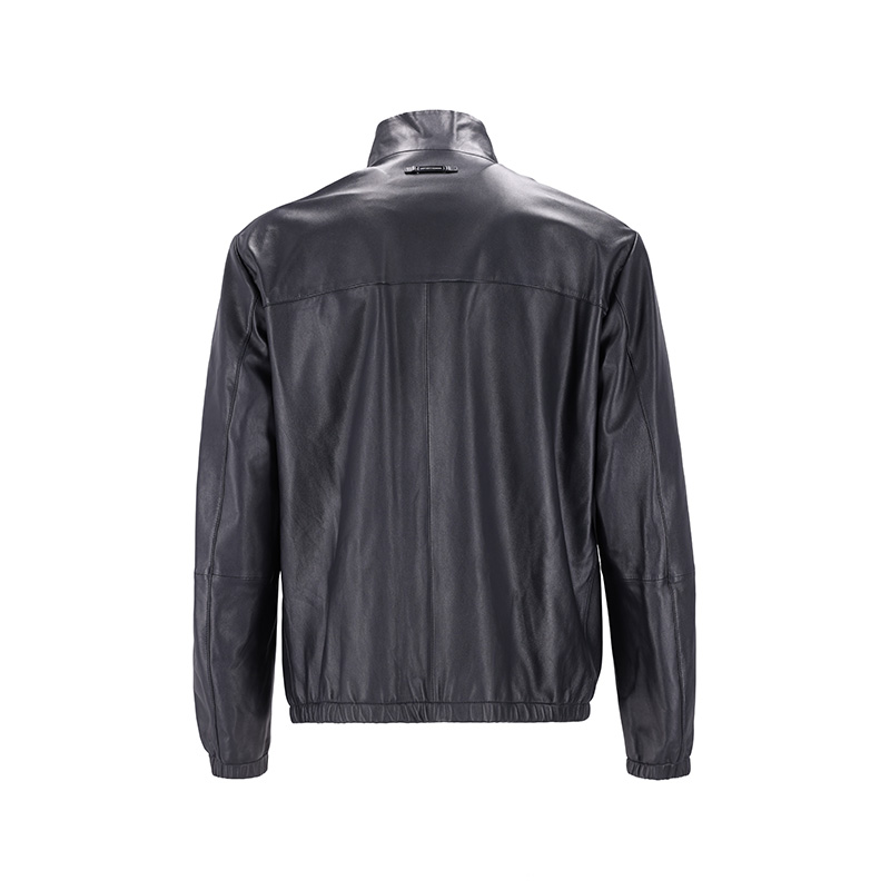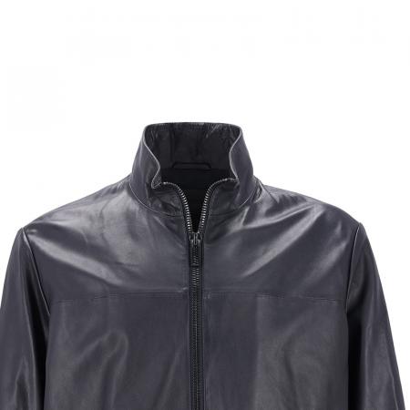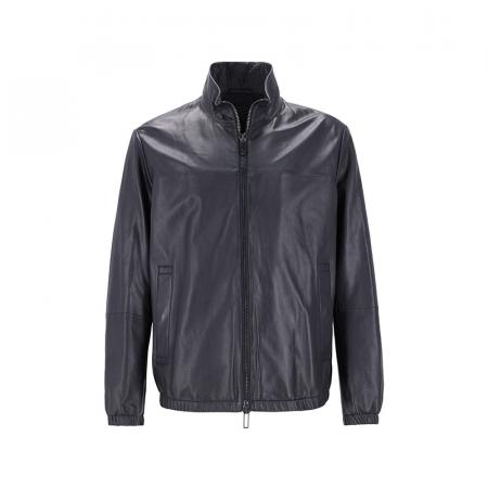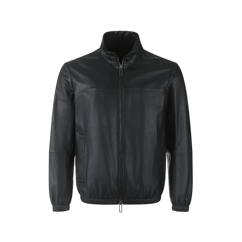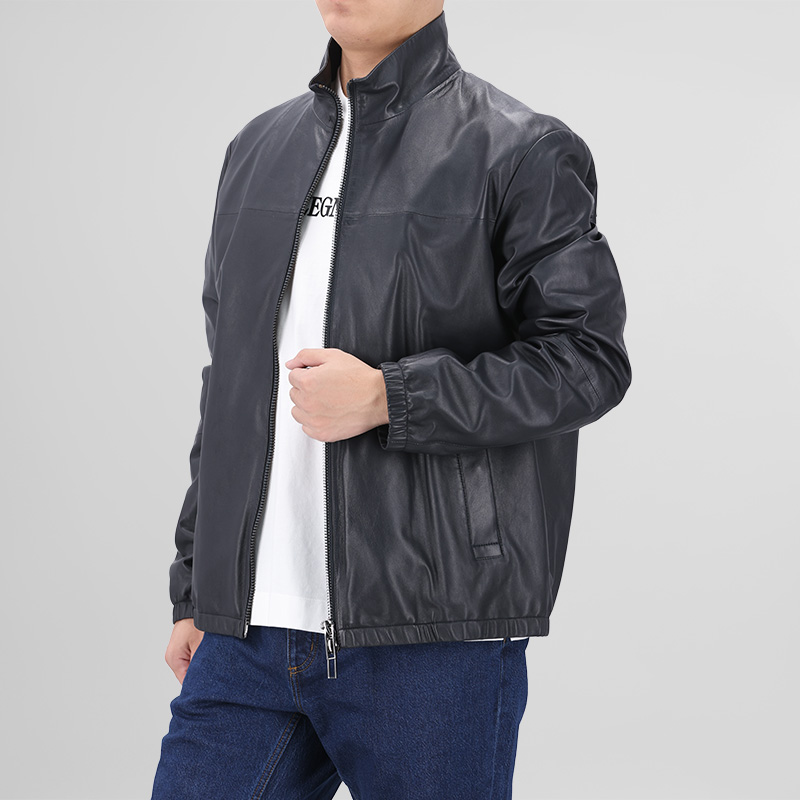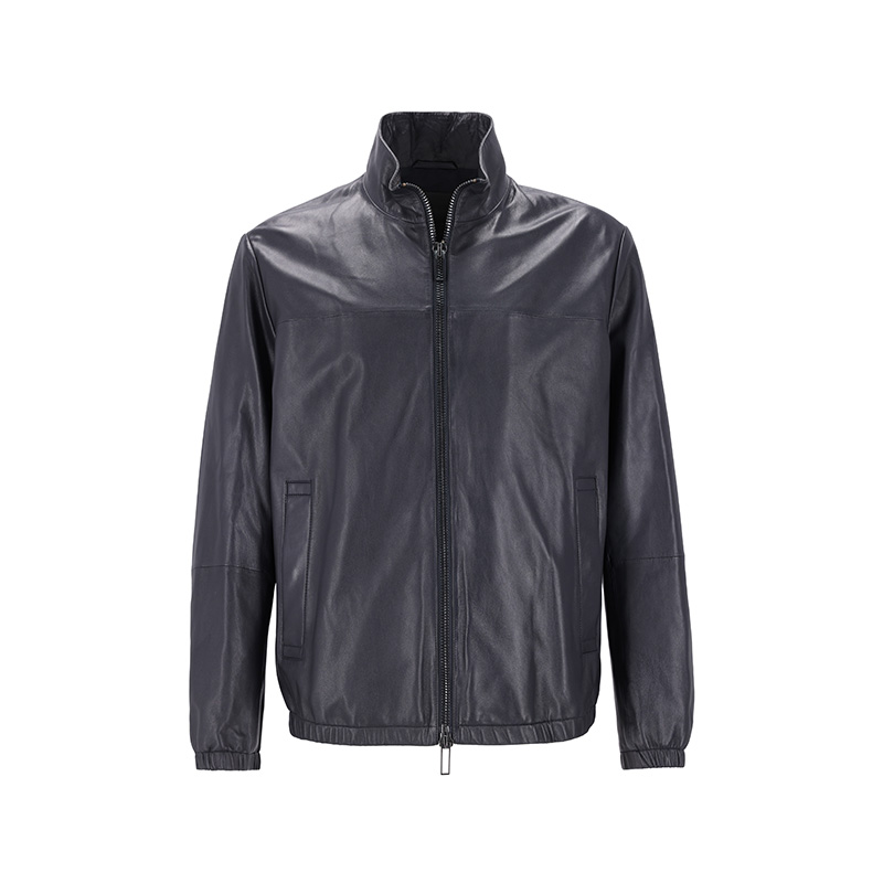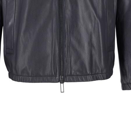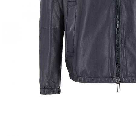自营Emporio Armani 阿玛尼 新品 男士羊皮革午夜蓝立领拉链皮衣夹克外套 01R55P 01P54 922