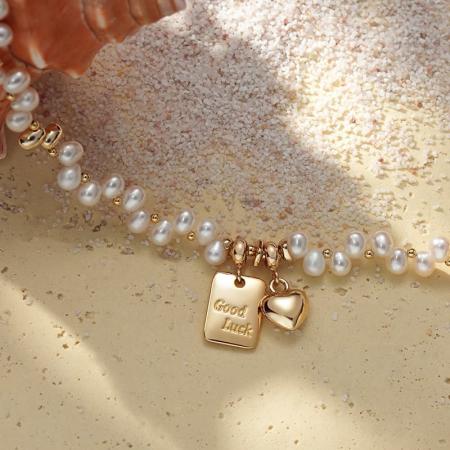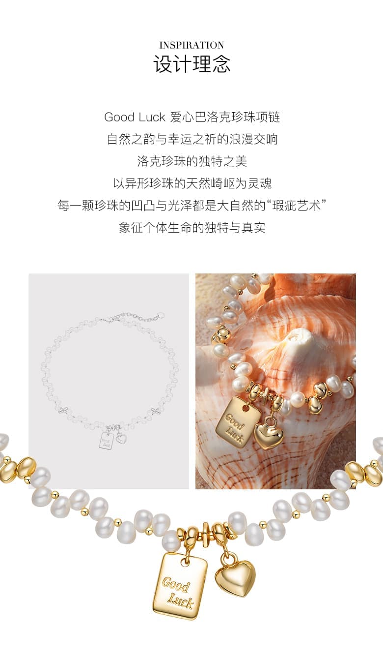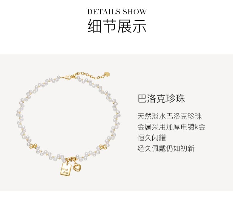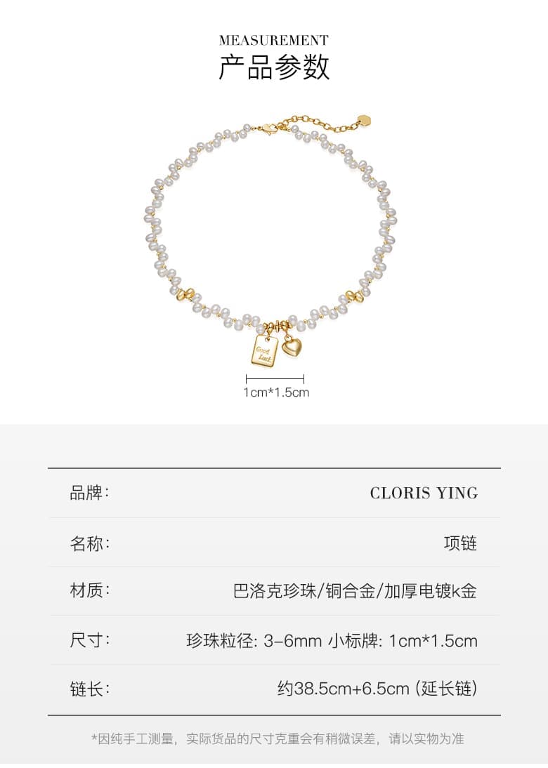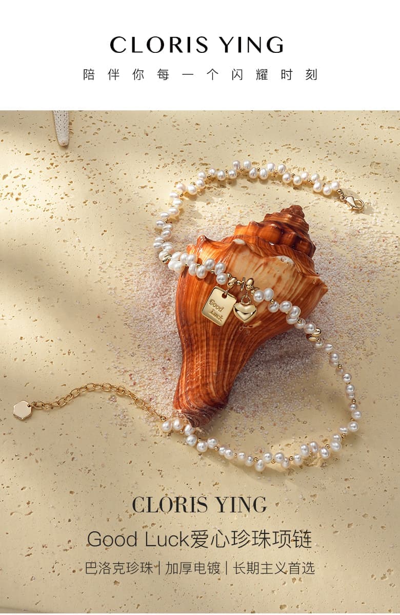 CLORIS 法式轻奢淡水珍珠幸运爱心字牌铜镀k金吊坠项链