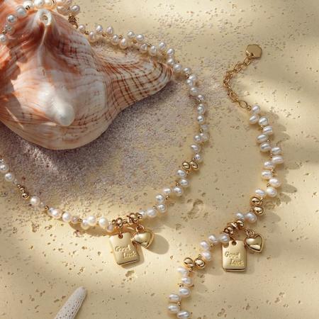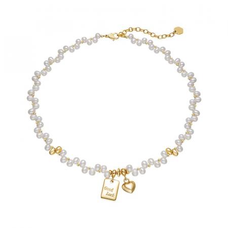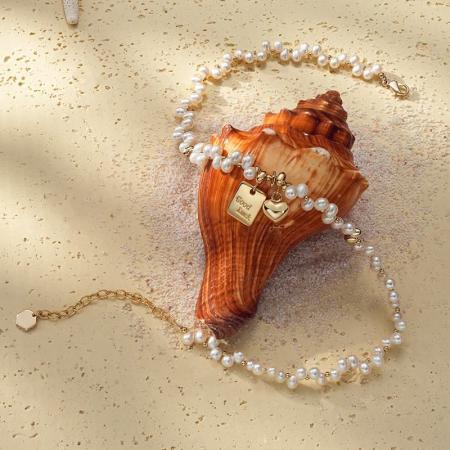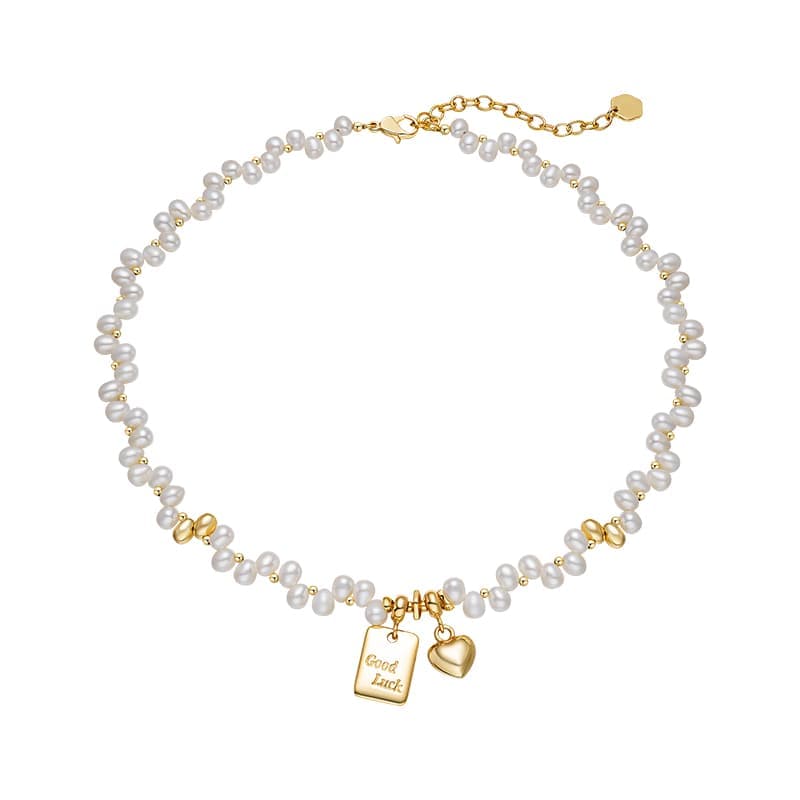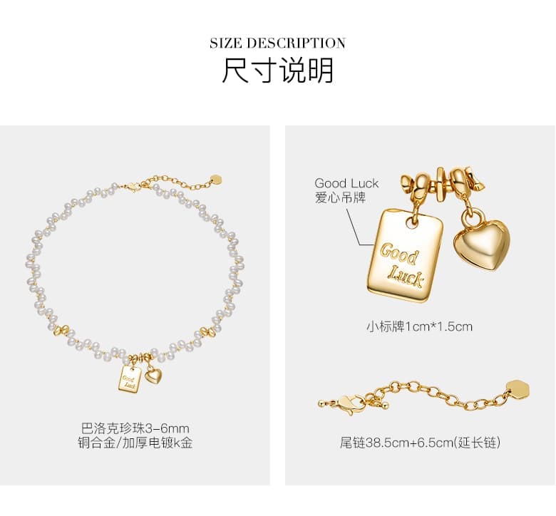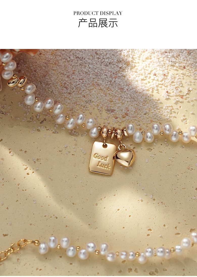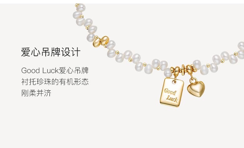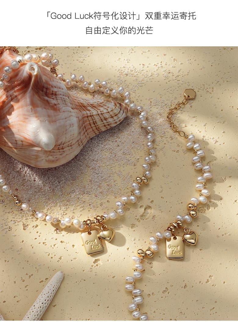 CLORIS 法式轻奢淡水珍珠幸运爱心字牌铜镀k金吊坠项链
