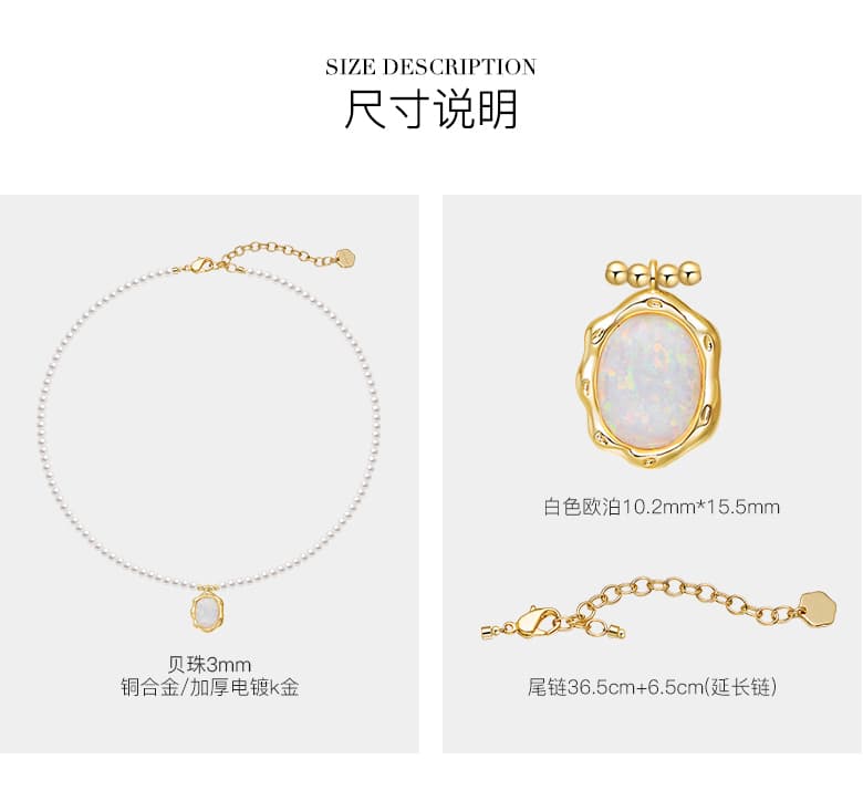 - 材质:贝珠3-4mm\欧泊、铜镀k金