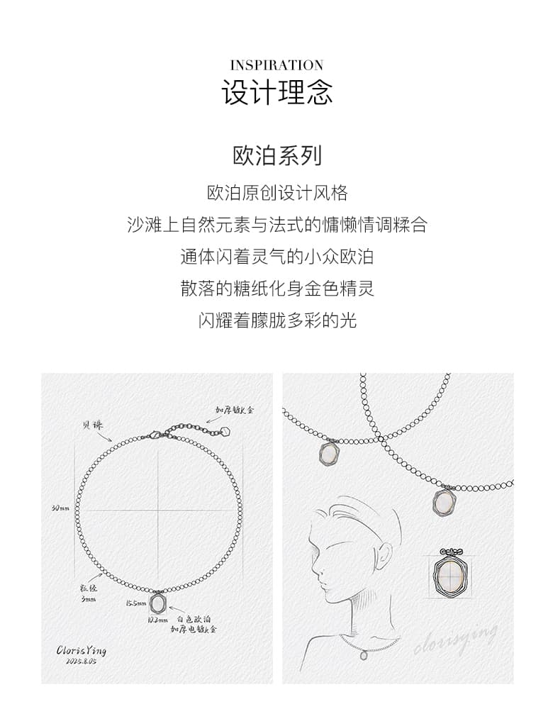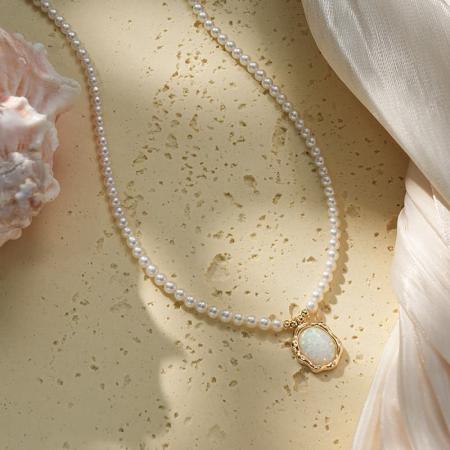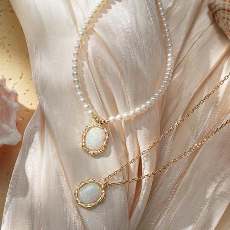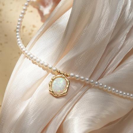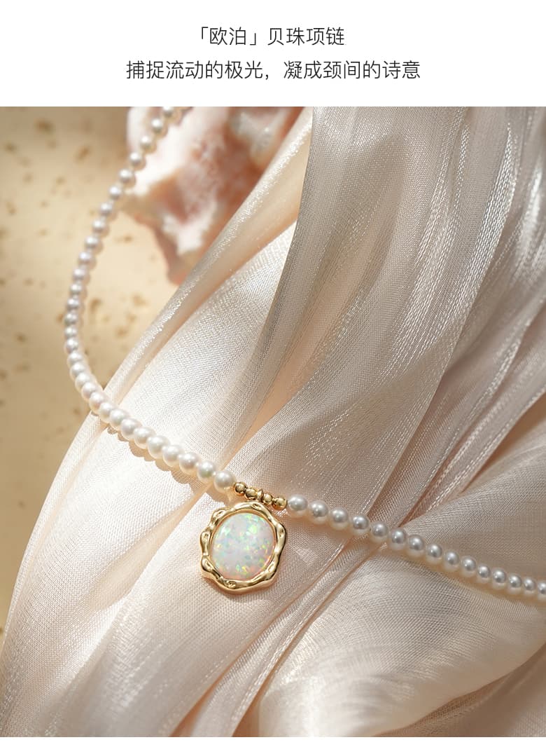 CLORIS 欧泊石系列‘法式轻奢小众设计贝珠调色盘欧泊石吊坠项链