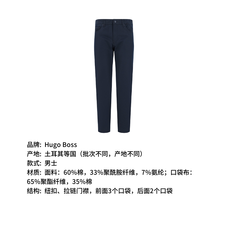 自营Hugo Boss 雨果博斯 25秋冬新品 男士机能通勤系列深蓝色修身版休闲裤长裤 50543953 404