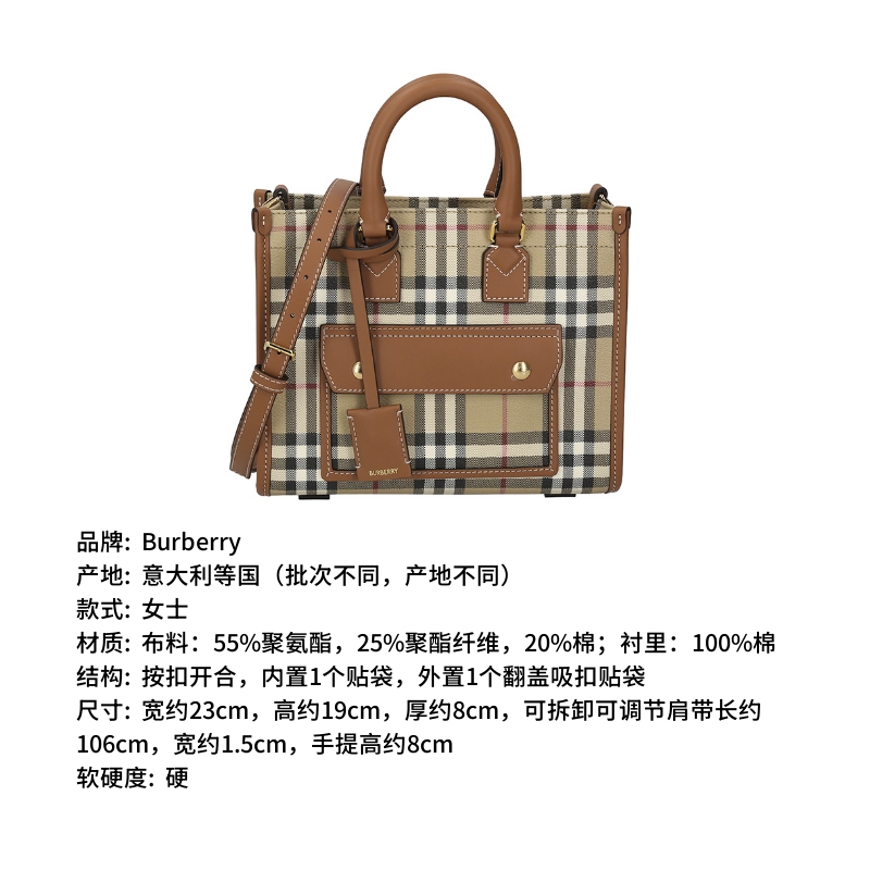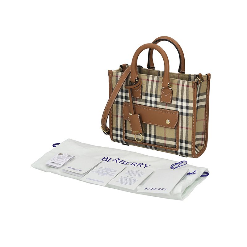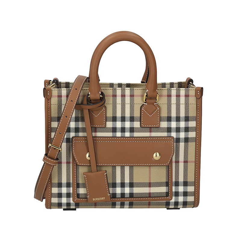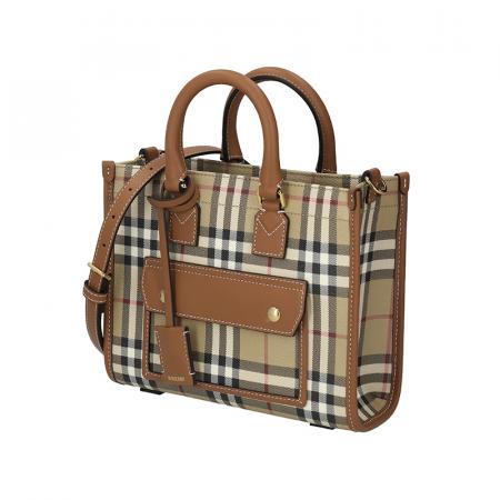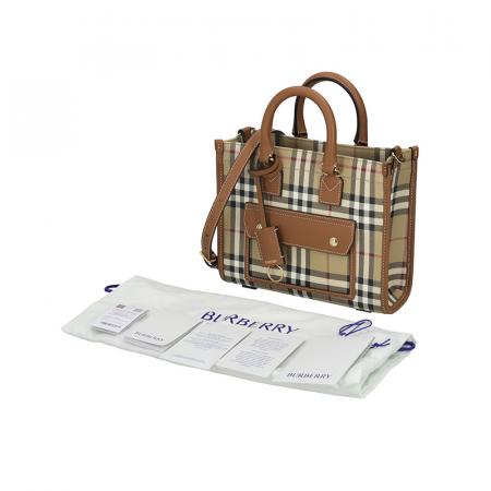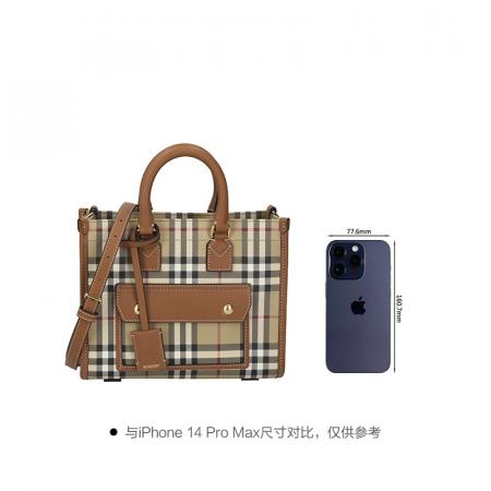 自营Burberry 博柏利 新品 女包 女士典藏米色/石楠棕Freya迷你芙蕾雅托特包手提单肩斜挎包 81097931