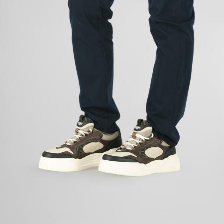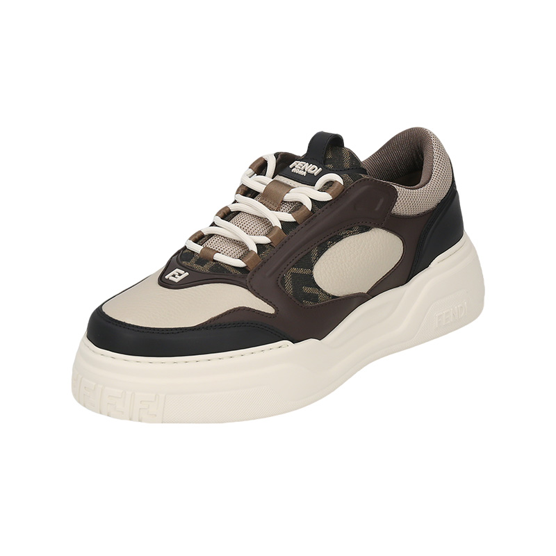 自营Fendi 芬迪 新品 男士牛皮革/织物棕色多色拼色Force厚底系带休闲运动鞋板鞋跟高5.5cm 7E1728 AU20 F1T29