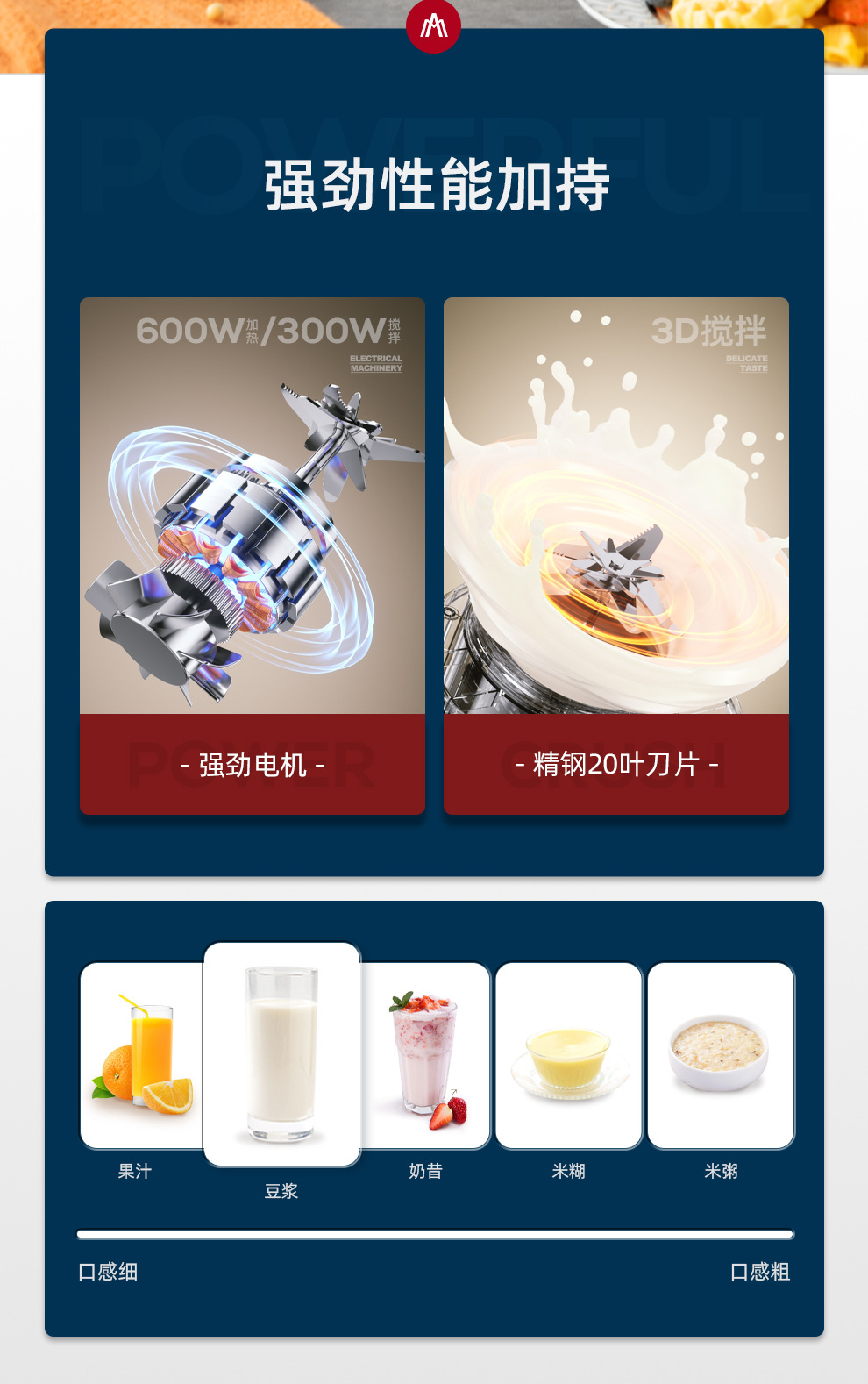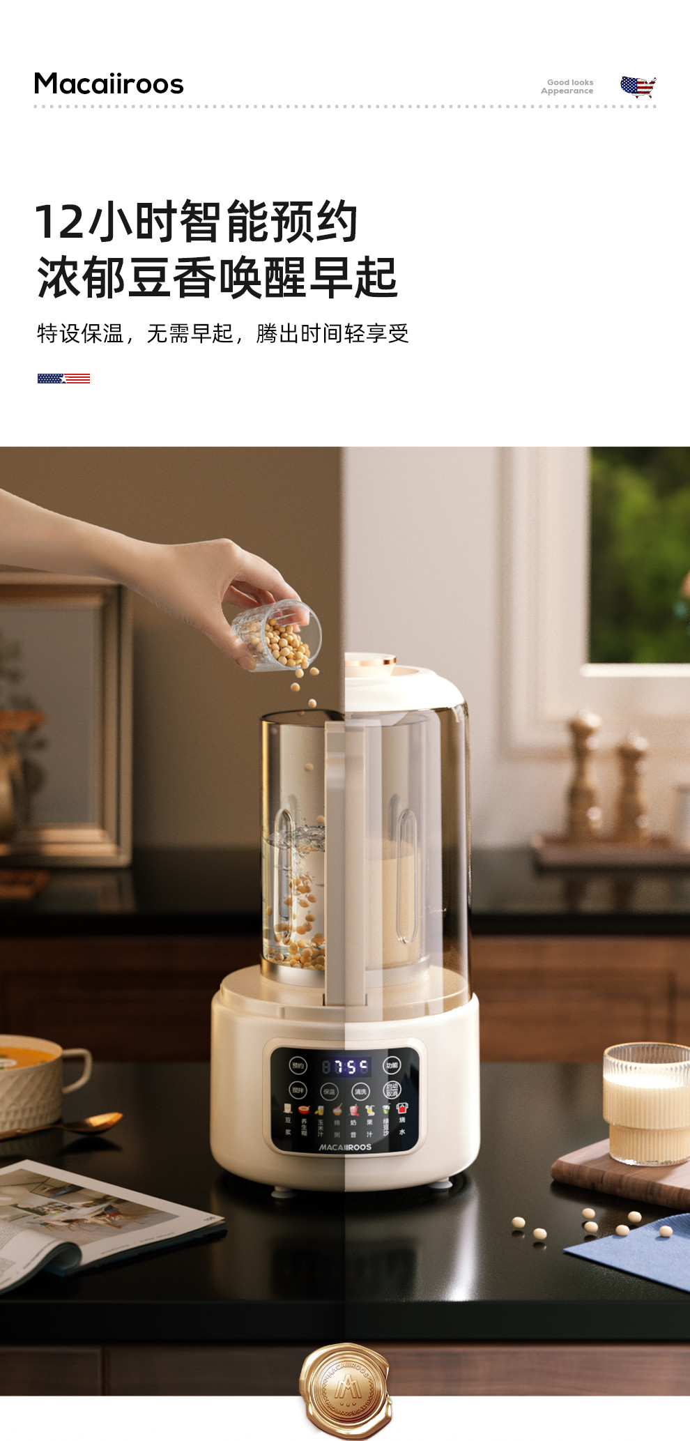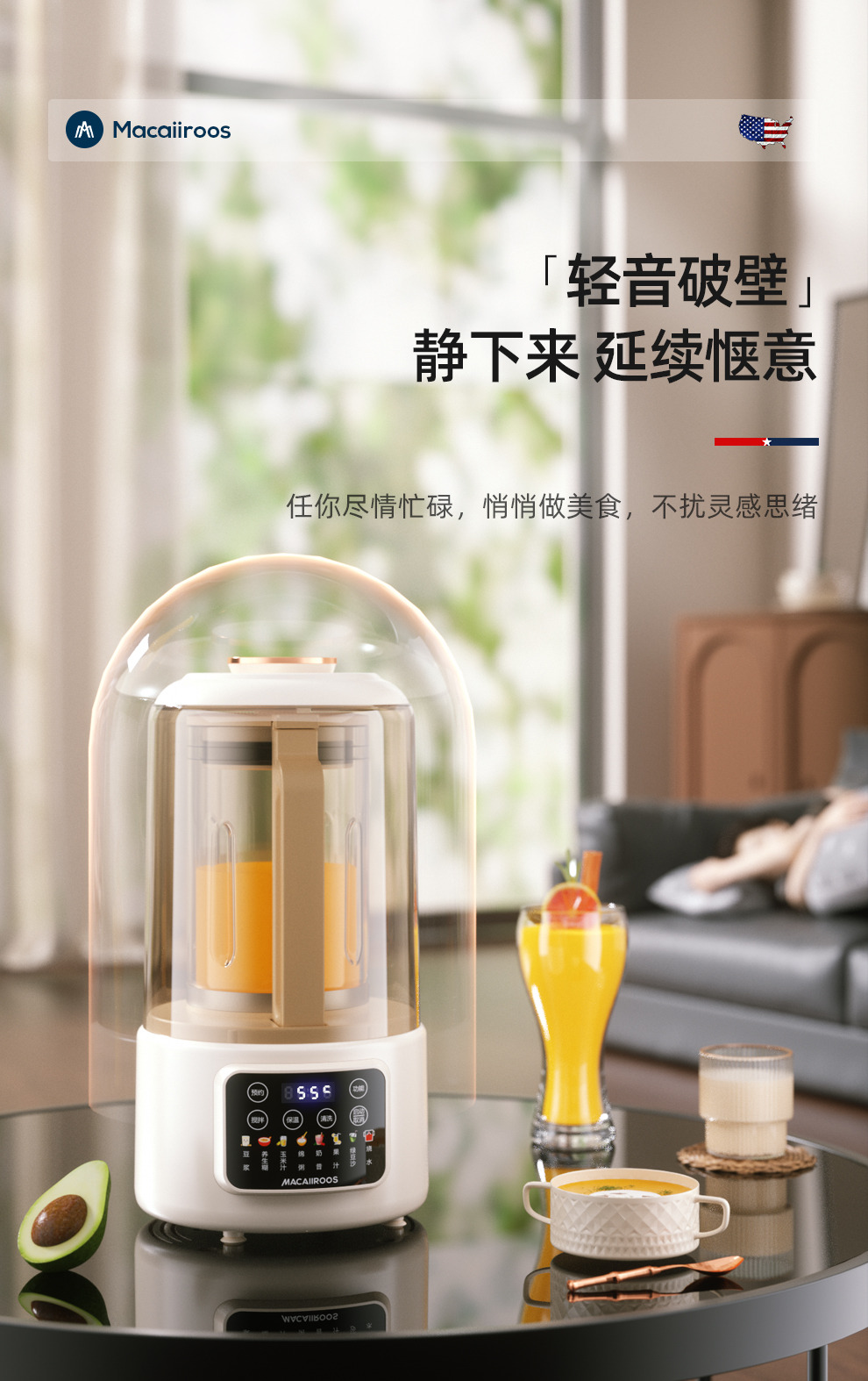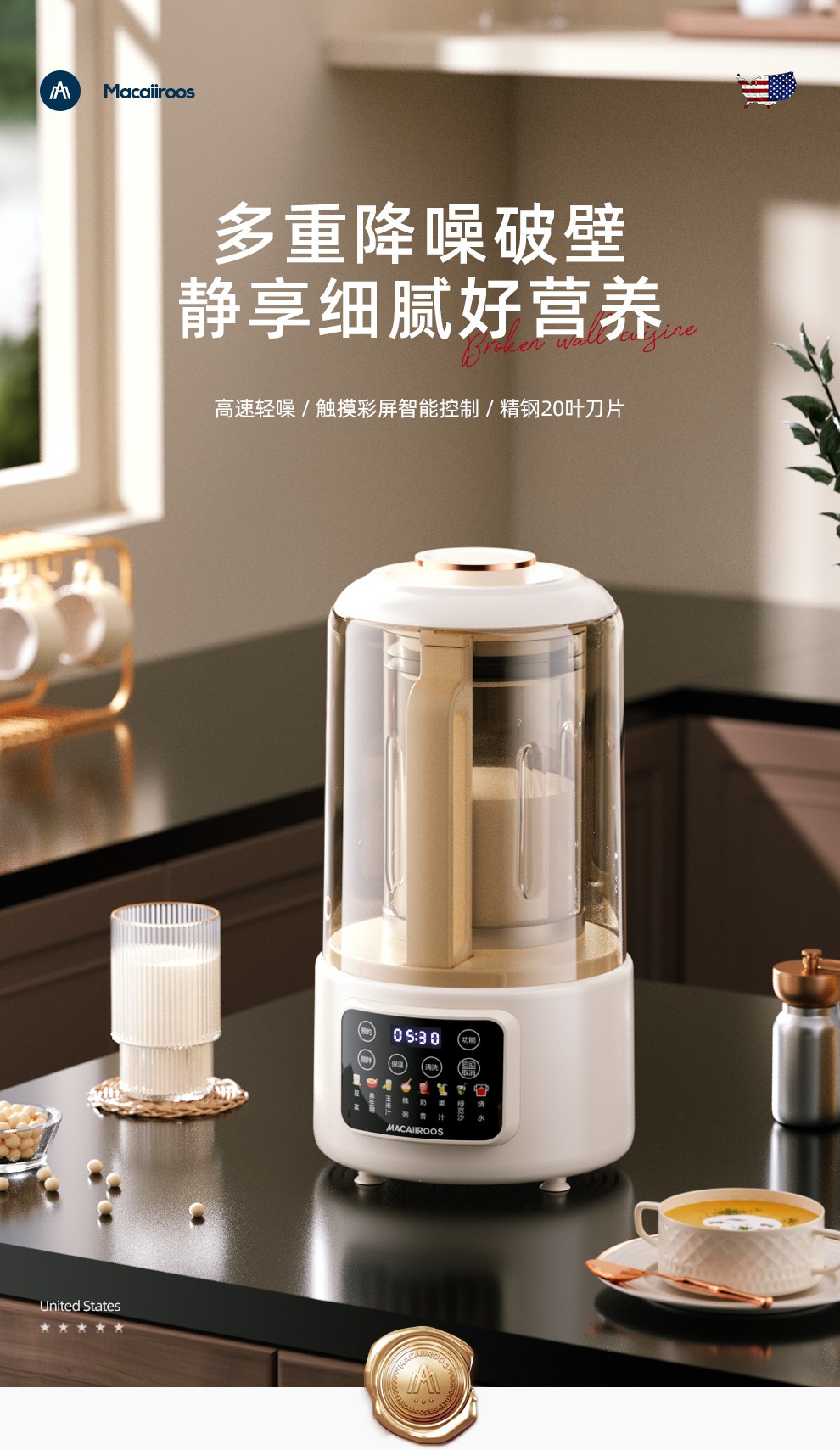 MACAIIROOS MACAIIROOS美国迈卡罗带静音罩低噪音设计12项多功能破壁料理机MC-PB15K