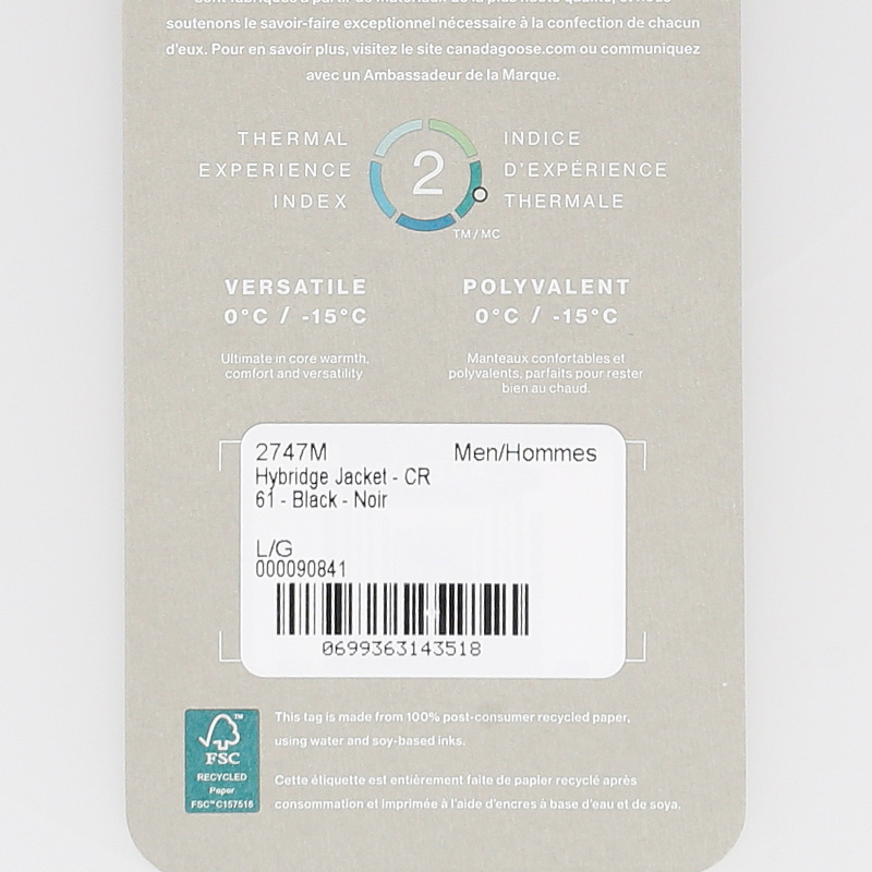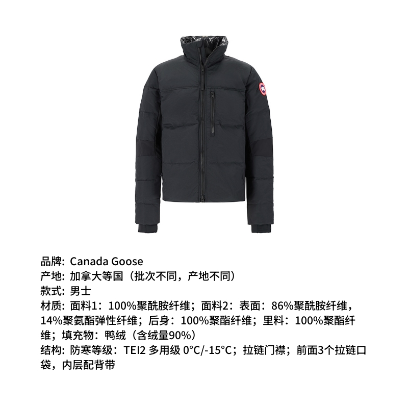 自营Canada Goose 加拿大鹅 新品 男士黑色徽标刺绣HyBridge鸭绒拼接羽绒服夹克外套 2747M 61