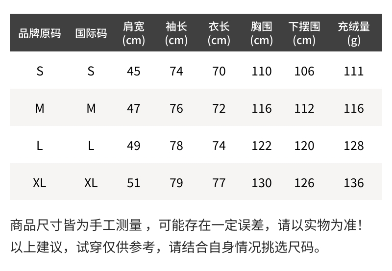 - 温馨提示:1.丢失包装及附件或拆除防损标签/吊牌时不予退换,敬请理解。2.批次不同,产地/细节有所不同,随机发货。3.所有尺寸皆为手工测量,存在1~3cm误差,请以实物为准!
