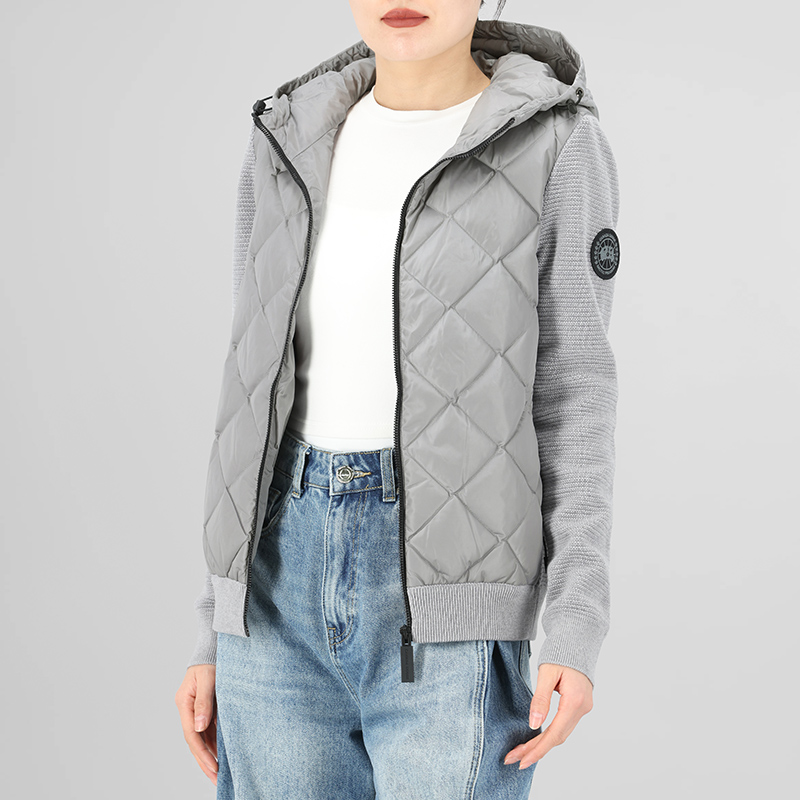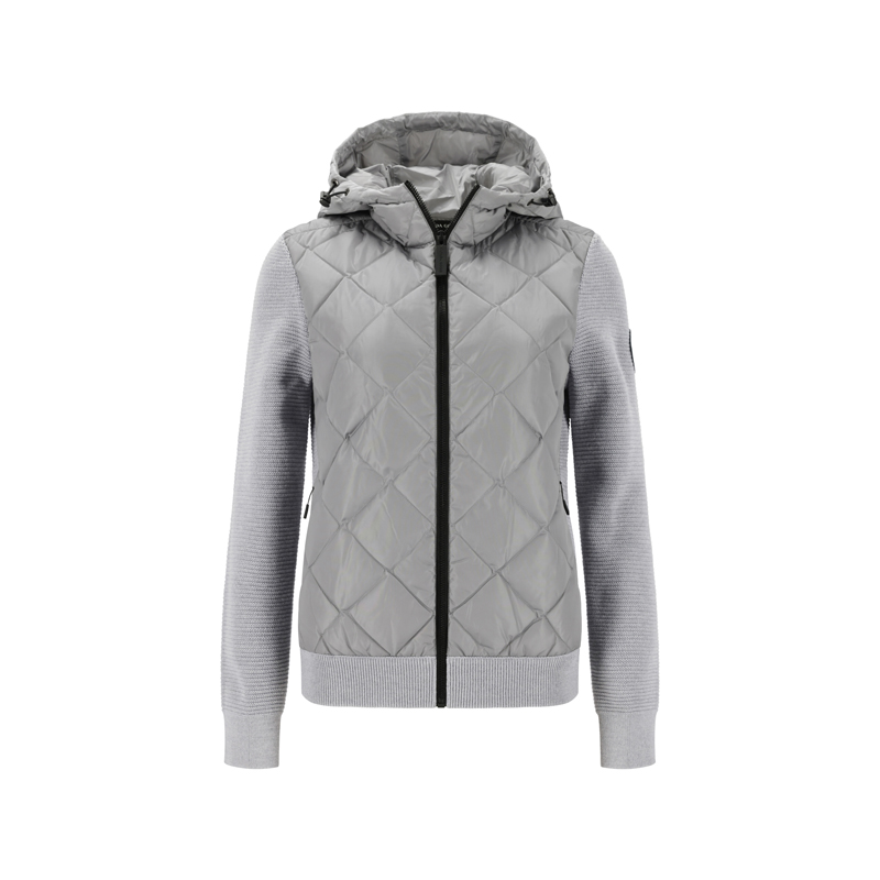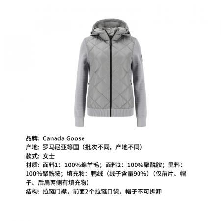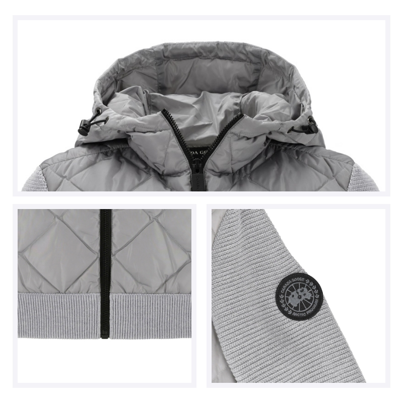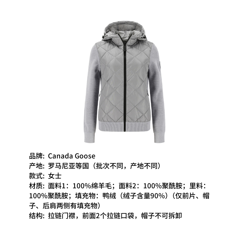 自营Canada Goose 加拿大鹅 新品 女士矿银色HyBridge黑标衬垫半羽绒鸭绒连帽拉链绗缝针织开衫拼接外套 6800LB 698