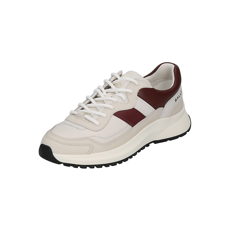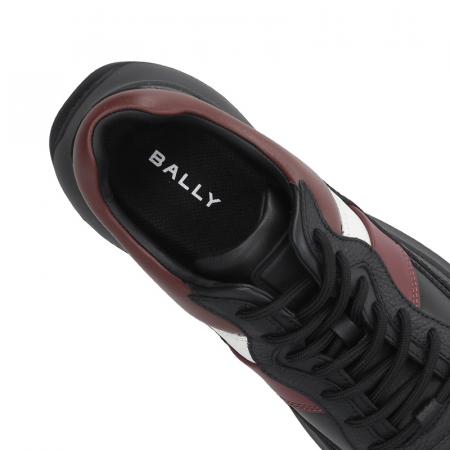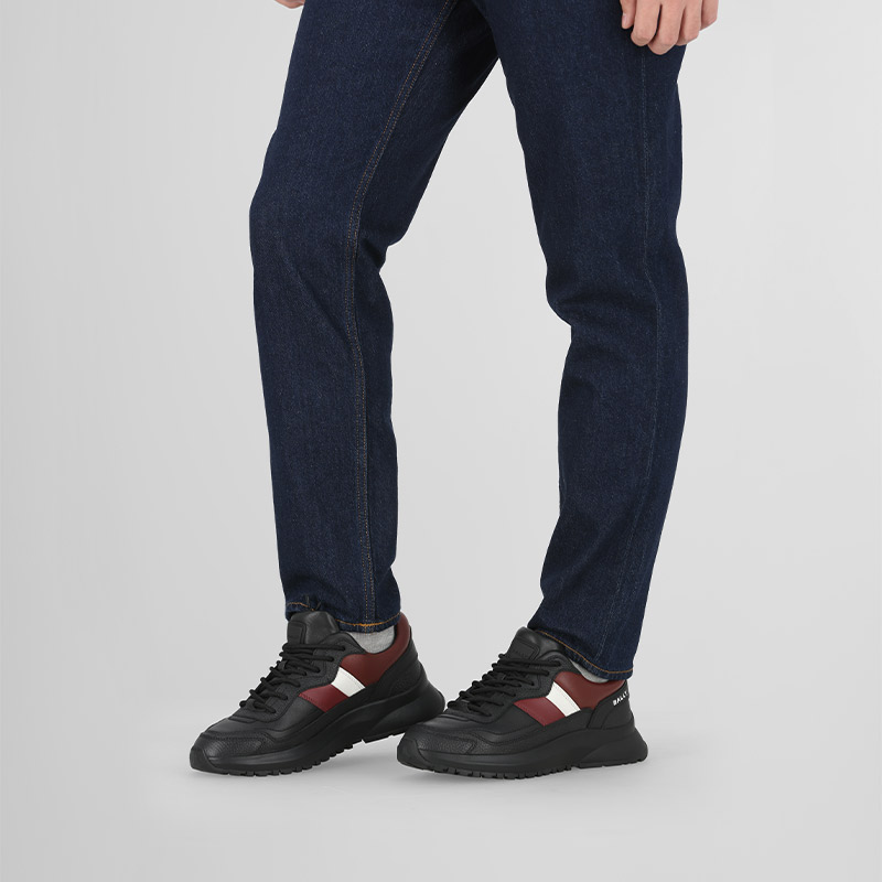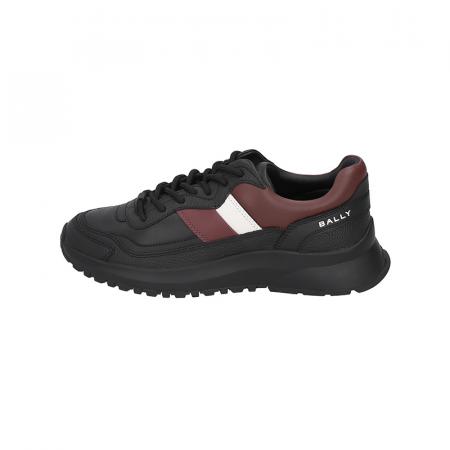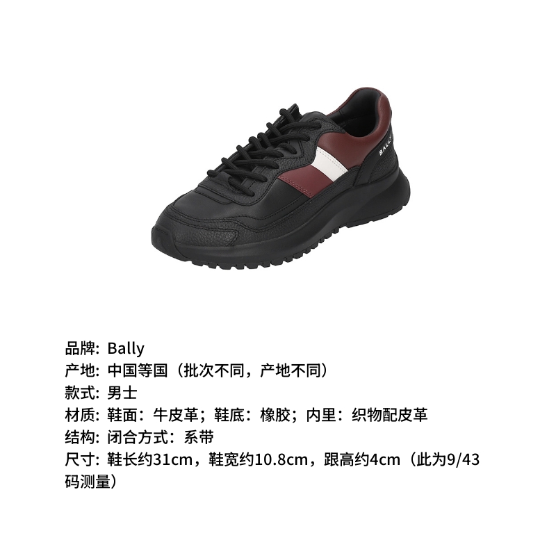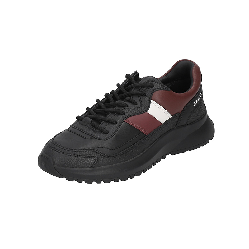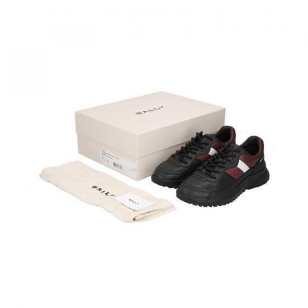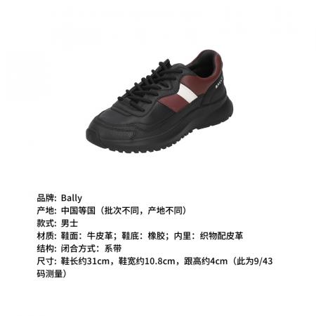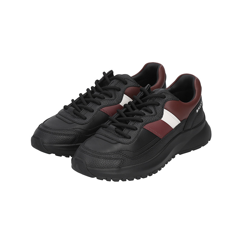自营Bally 巴利 新品 男士Outline系列牛皮革黑色红白经典条纹厚底系带休闲运动鞋 DENNYS 39 6312858