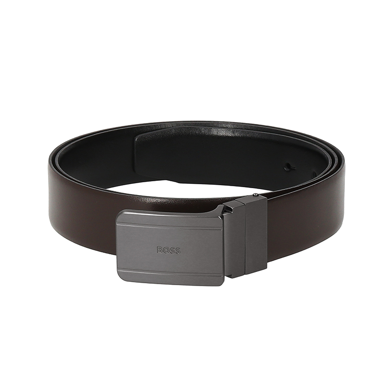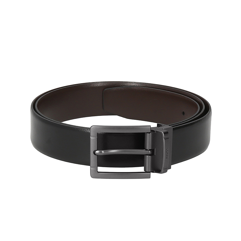 - 这款 3.5 厘米宽的 BOSS Menswear 双色腰带配有可调节的哑光炮铜色针扣加牌扣,可为各式造型锦上添花。雕刻徽标。皮革质感丰富。