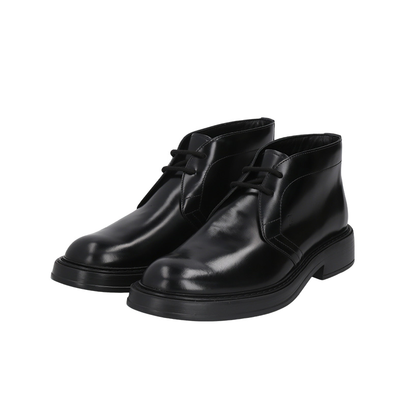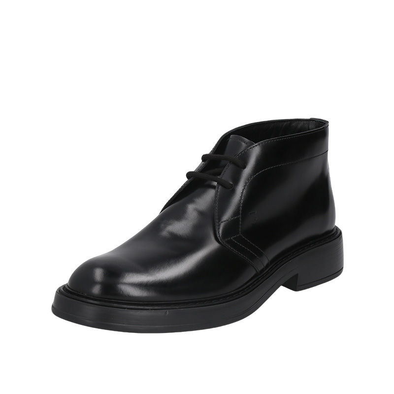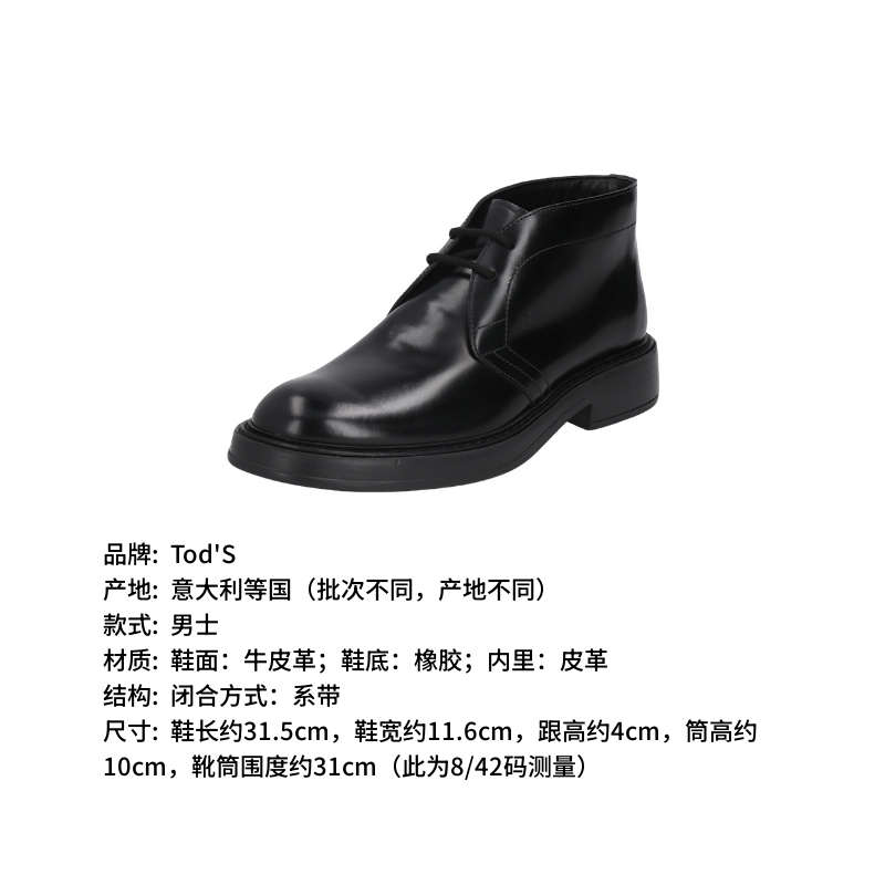 自营Tod'S 托德斯 新品 男士牛皮革黑色系带厚底靴子踝靴短靴 XXM61K00D80LYGB999