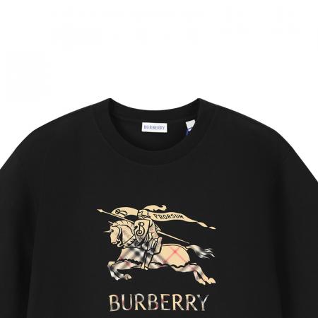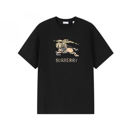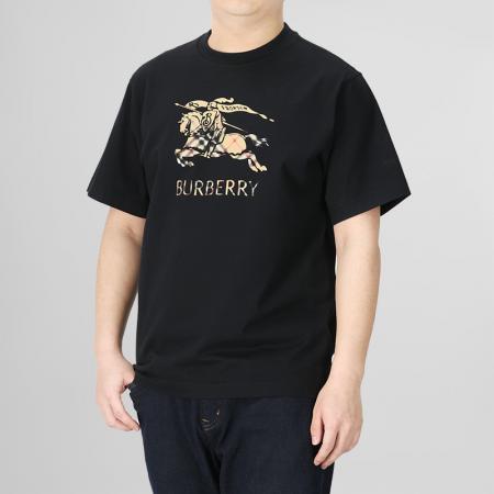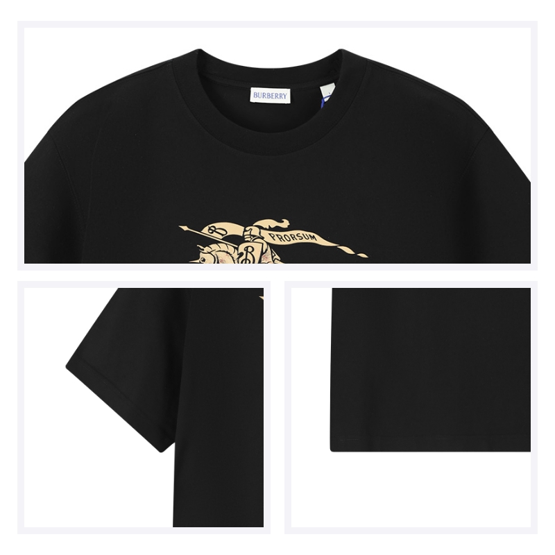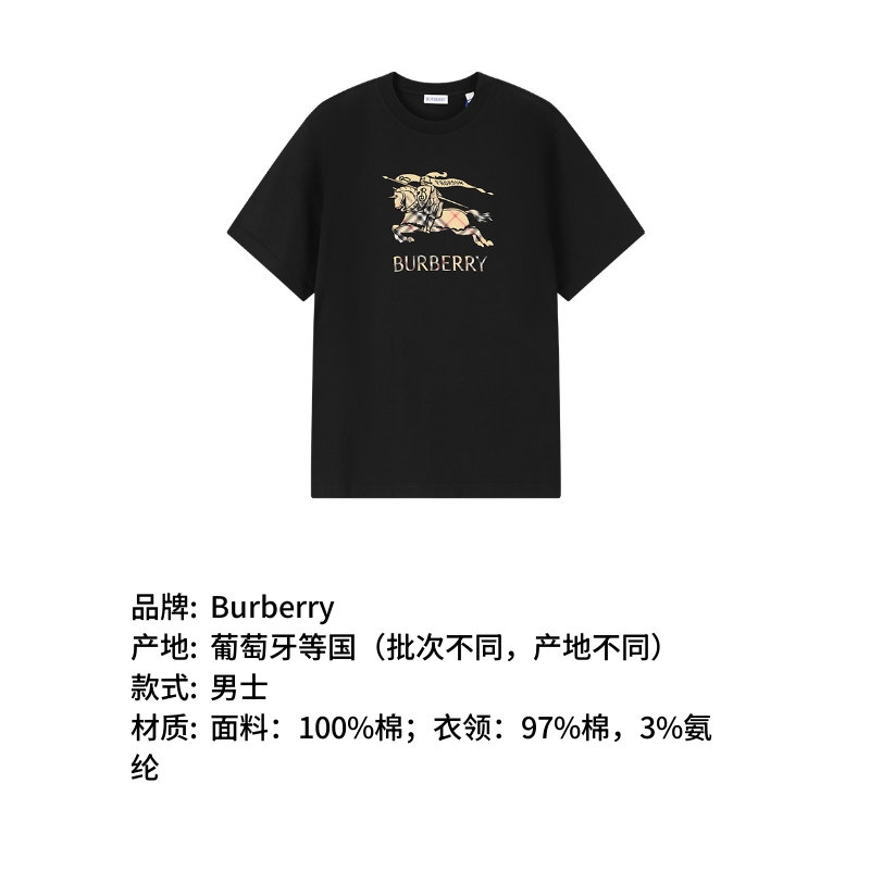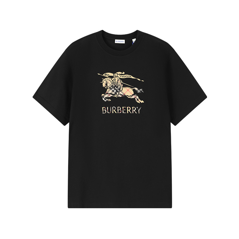 自营Burberry 博柏利 新品 男士棉质黑色渐变格纹马术骑士徽标圆领短袖T恤 81190131