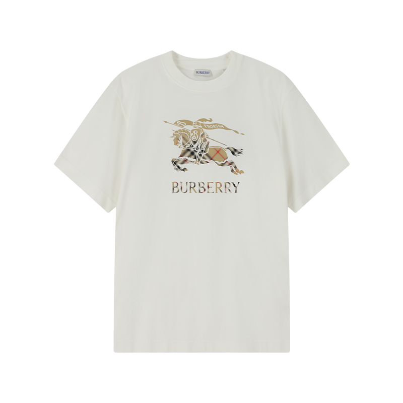 - T 恤衫,选用轻盈平织棉面料制成,呈现修身版型。圆领款式,融入品牌徽标和马术骑士徽标(EKD)印花,装饰渐变 Burberry 格纹。