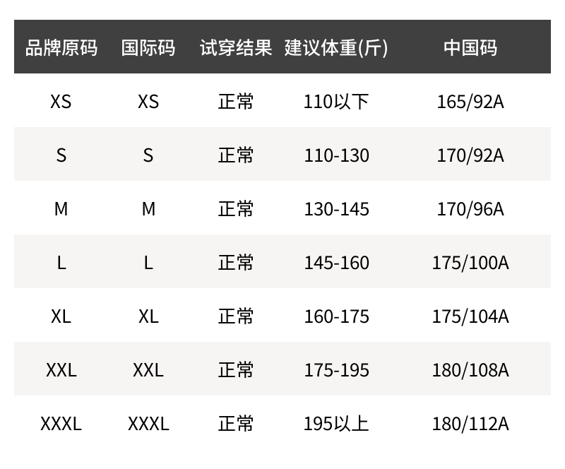 - 尺码说明